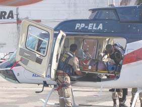 Essa foi a primeira atuação do helicóptero neste Carnavla. Depois do início da simulação de um acidente, feita no bairro do Jaraguá, o piloto do helicóptero, major Ricardo Cruz, afirmou que a previsão era de seguir com as vítimas até a Academia da Polícia Militar, mas isso não foi feito para chegar mais rápido ao acidente de São Miguel dos Campos.