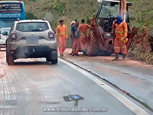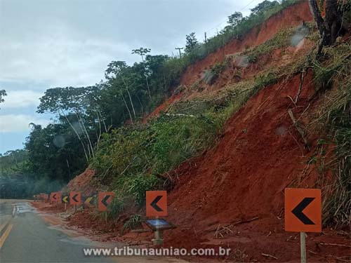 Desmoronamento de barreiras, bolsões d'agua e estreitamento de pista é o estado dos 36 kms da BR-104 entre União e Messias