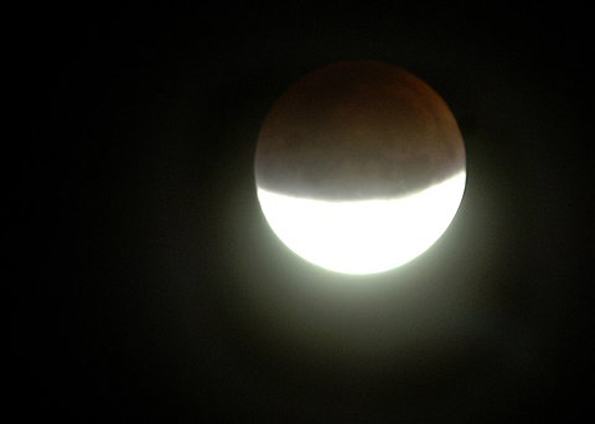 Este foi o eclipse mais longo dos últimos sete anos. Quando chegou ao seu máximo, longe dos olhos dos brasileiros, a Lua terá um brilho avermelhado. Nesse ponto, totalmente encoberta pela sombra da Terra, ela deve ficar por uma hora e meia, muito mais do que o normal.