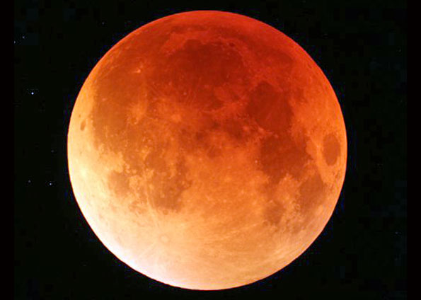 A eclipse total acontece quando a lua cheia está alinhada com a Terra e o Sol, como na madrugada de hoje. No eclipse total, o tom avermelhado revela as condições do nosso planeta.