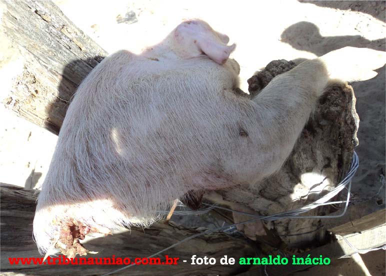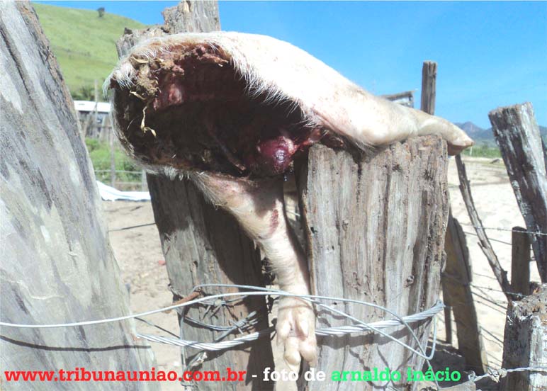 "É uma criatura horrível", contou Canion, segurando a cabeça do mamífero, que tem orelhas compridas, dentes grandes e projetados e pele azul-acinzentada quase sem pêlos.