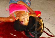 O crime aconteceu em via pública, na porta da casa de nº 230, da Travessa Ângelo Martins, no Santo Eduardo. Segundo o sargento Pessoa, do 1º Batalhão da Polícia Militar, os moradores disseram não conhecer nenhuma das vítimas.