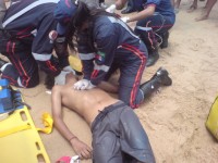 O afogamento ocorreu próximo ao Posto 7. O soldado Leal, do Corpo de Bombeiros, informou que não estava de serviço, mas notou que havia algo errado e foi ajudar as quatro pessoas que estavam se afogando.