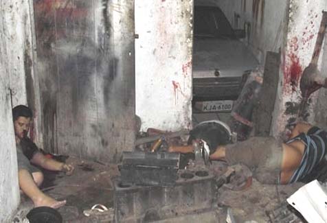 Na Churrascaria do Pangola dois homens tomavam refrigerante numa mesa e quando as vítimas entraram no estabelecimento foram recebidas a bala, sem que tivessem tempo de reagir.