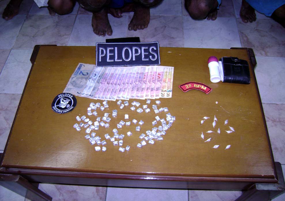 Com os acusados, que eram investigados há quase um mês pelo serviço reservado da Policia Militar, foi encontrado 94 papelotes de maconha, 13 pedras de crack, R$ 143,00 em espécie, (provavelmente arrecadados com a venda das drogas) um frasco para acondicionar o crack e duas bolsas porta cédulas, sendo que no interior de uma delas ainda foram encontradas moedas no valor de R$ 4,30, provavelmente utilizado para passar o troco da venda ilícita.