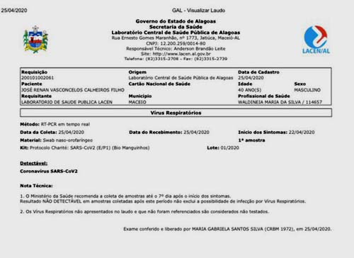 Além dos três secretários do estado, ainda neste sábado (25), o prefeito de Murici anunciou em vídeo publicado na rede social que ele e a esposa testaram positivos para covid-19.