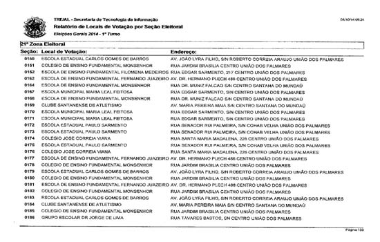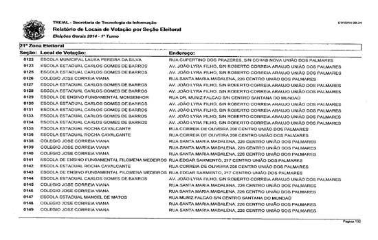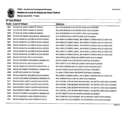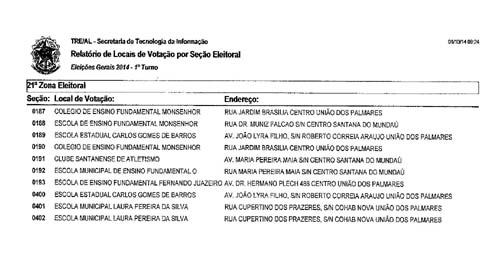 A 21a. Zona Eleitoral do Estado de Alagoas abrange os municipios da Zona da Mata União dos Palmares e Santana do Mundau. Quase 50 mil eleitores estão sendo esperados neste domingo para exercer o voto nos candidatos a prefeito dos dois municipios.