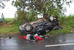 Um grave acidente envolvendo um veículo Pálio de cor grafite e placa MVF 6778, de Maceió, e uma motocicleta de placa NME 7255, de União dos Palmares, deixou duas pessoas mortas e quatro feridas na tarde deste domingo, 13, na BR 101, na entrada do município de Messias, distante 33 km de Maceió.
