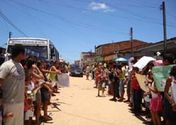 Moradores e familiares das meninas Cassandra e Jaciara se mobilizaram para receber os corpos das pequenas, que chegaram, agora há pouco, na rua Nossa Senhora de Fátima, no bairro de Santa Lúcia, em Maceió. Um grande corredor de gente foi formado para receber o carro da funerária e o clima é de comoção.