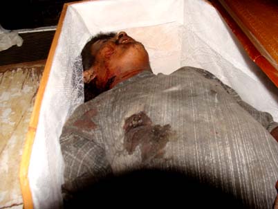 Como foi informado a Policia Militar que o IC e o Rabecão não poderiam vir recolher e proceder à perícia no local do assassinato, familiares de Luciano com o consentimento da Policia Civil deslocaram o corpo para sua residência utilizando uma viatura de uma funerária particular.