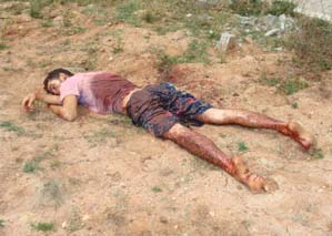 Dezenas de curiosos se aglomeraram em torno do cadáver que aparentava pela coagulação do sangue ao lado do corpo dilacerado à facadas, ter sido morto na noite anterior, isto é ontem dia 11 pouco tempo depois de ser assassinado outro rapaz no outro acesso viário a cidade, desta feita na Avenida Antonio Gomes de Barros.