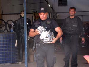 Os policiais aprrenderam veículos e peças supostamente roubadas. Para isso, eles checaram os números dos chassis e a numeração dos motores dos veículos, além de confiscarem notas fiscais das peças.