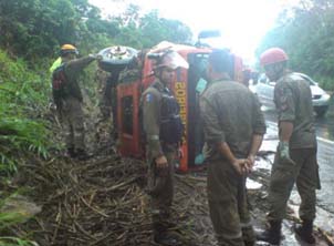O acidente aconteceu quando a viatura chegava para socorrer uma vítima de um outro caso. Segundo os bombeiros, eles foram acionados para socorrer vítimas presas nas ferragens depois de uma colisão envolvendo um caminhão. Mas, a pista estava escorregadia por conta da chuva e o motorista da viatura acabou perdendo o controle do veículo e tombou na pista.