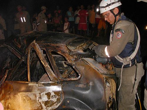 Ao todo foram gastos seis mil litros de água para conter o fogo, o que durou aproximadamente 40 minutos. Enquanto os passageiros e funcionários da empresa Real eram atendidos e conduzidos a Unidade de Emergência, a batalha era retirar o corpo do motorista do Gol – sem identificação – que teve o corpo carbonizado e ainda estava preso às ferragens.