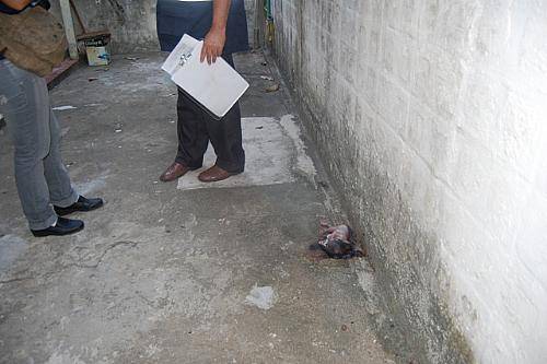 Os peritos do Instituto de Criminalística (IC) acreditam que o feto tem entre cinco e seis meses e foi retirado a força, devido a marcas encontradas na nuca. Um guardanapo de papel sujo de sangue também foi encontrado próximo ao corpo, que já começava a apresentar mau cheiro.