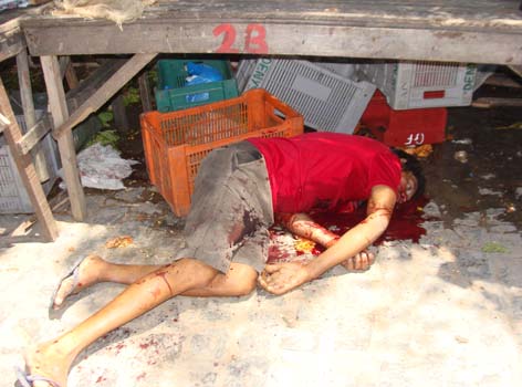 Como não dispunha da quantia solicitada, o feirante após consultar os bolsos ofertou apenas R$ 0,25 para ‘Pezão’ que alegou não ser “esmoler” (pedinte), e após sacudir as moedas no rosto do desafeto, aplicou-lhe um gole de faca no pescoço. Mesmo ferido, ‘Carlinhos’ conseguiu correr, apanhar uma faca de outra pessoa e voltar a sua banca onde desfechou um golpe certeiro no pescoço de pezão que morreu no local antes mesmo de ser atendido.