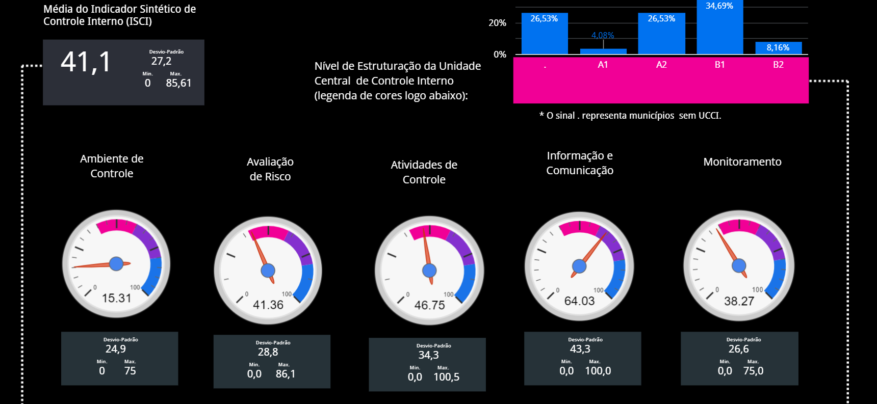 A região Sudeste, por sua vez, apresentou a pior média de desempenho, muito em decorrência da concentração de um elevado número de municípios de pequeno porte em estados como Minas Gerais e São Paulo. Tais municípios apresentam baixa capacidade financeira e técnica para estruturação de Unidades Centrais de Controle Interno.
