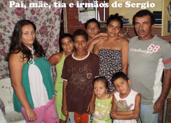 A família de Sergio é composta de 10 pessoas, a partir da bisavó materna do menino com 97 anos de idade cujo nome é Helena, a mãe do garoto senhora Eliane dos Santos da Silva, e dos irmãos de Sergio que são Edilza 19 anos, Andriel 15, Daniela 11, João Heleno de 5, Maria Vitória de 3, John Lennon de 8 e finalmente Sergio que agora completa 10 anos.