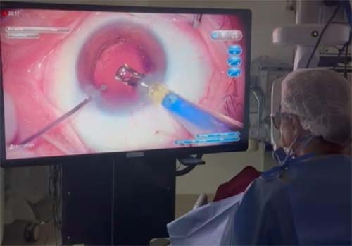 Dra. Leila explica que a cirurgia para a correção da presbiopia é a mesma da catarata, mas com abordagem diferente. Hoje, com o avanço da tecnologia na área oftalmológica, durante o procedimento cirúrgico, aplica-se a tecnologia 3D. “Parecida com a laparoscopia, que é feita com furinhos, hoje, fazemos uma incisão mínima, de 2 milímetros. Colocamos o microscópio e, por meio de uma televisão de 60 polegadas 4k, temos uma imagem altamente nítida e o resultado do procedimento é absurdamente preciso”, destaca a vice-presidente da ABCCR.