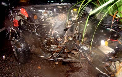 antonio aragão // Uma violenta colisão frontal envolvendo uma caminhoneta Blazer preta placas 3211 matriculada em União dos Palmares, pertencente a uma funerária da cidade que era guiada pelo motorista identificado apenas como Pedro Henrique e o veiculo Fiat Uno branco de propriedade de um supermercado também de União dos Palmares placas MLG-8417-Al por volta das 18,30 horas desta sexta feira (2010 Jun 04) deixou o saldo de dois mortos e dois feridos, um deles em estado grave. Segundo o sargento Francisco que comandava uma guarnição do PELOPES e atendeu a ocorrência chovia bastante no momento da colisão registrada no quilometro 27,4 da BR-104 (Fazenda Pedrinhas) na zona rural de União dos Palmares. Com a violência do choque morreu no local o motorista do Fiat Uno Edjunior Soares da Silva de 21 anos de idade, residente na Rua Joaquim Correia, no bairro da Várzea Grande na periferia da cidade. O sinistro também causou lesões graves nos passageiros do Fiat (marido e mulher) Ana Paula da Silva de 27 anos, comerciária, funcionária de uma loja de tecidos, seu marido Carlos André Alves da Silva (24 anos), pensionista, ambos residentes na Vila Papa Paulo VI no distrito de Rocha Cavalcanti em União dos Palmares para onde se dirigiam quando foram acidentados, além do ocupante da Blazer Antonio Gomes da Silva de 43 anos de idade, residente na Rua Lindolfo Gomes Cabral, Bairro Roberto Correia de Araujo também na periferia de União. O motorista da Blazer cuja identidade não foi levantada pelas policias militar, civil e PRF é conhecido apenas como Pedro Henrique e reside na Travessa Santa Maria Madalena, no centro da cidade, que empreendeu fuga em seguida ao acidente. Policiais da Polícia Rodoviária Federal que controlavam o transito no local e ajudaram na remoção dos feridos disseram que somente após o laudo é que se pode precisar as reais causas do acidente. Apesar de lúcida, Ana Paula que se queixava de fortes dores ao dar entrada na emergência do Hospital Regional São Vicente de Paulo quando recebia os primeiros socorros médicos entrou em óbito. Ambulâncias do SAMU transportaram Carlos André (em estado grave) e Antonio Gomes da Silva ao HGE em Maceió. Segundo os médicos do Hospital São Vicente, o estado de Carlos André inspira cuidados. Veja o Vídeo http://www.youtube.com/watch?v=fSAF-vjNbcc |