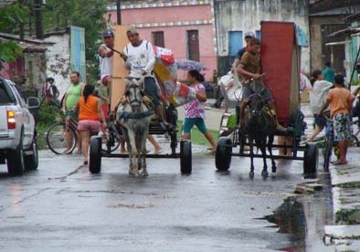 Os moradores utilizaram carroças para transportar os objetos. O muro de uma residência desabou. Não há registro de vítimas das chuvas, mas a defesa civil da cidade está em alerta.