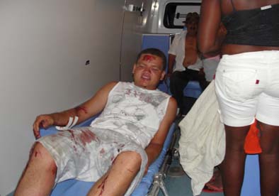 As duas vitimas socorridas respectivamente pelo SAMU e uma guarnição da RP do 2º BPM, contaram suas histórias enquanto aguardavam atendimento médico: a primeira se trata do agricultor José Justino da Silva, de 49 anos de idade, residente no bairro Santa Fé. Segundo o homem, guiava sua moto pela estrada vicinal que interliga o bairro a BR-104 quando repentinamente se deparou um enorme buraco, e como trafegava em velocidade razoável foi impossível brecar a tempo de evitar o acidente. Em virtude do tombo, sofreu escoriações generalizadas.