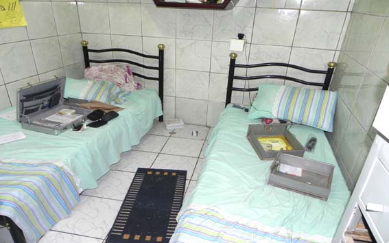 Por não saber o segredo do cofre, uma irmã do dono da corretora levou vários murros no rosto, enquanto era confundida com a esposa do rapaz, que diante da ameaça das armas, abriu o cofre e entregou o dinheiro em espécie e cheques pré-datados dos clientes aos ladrões.