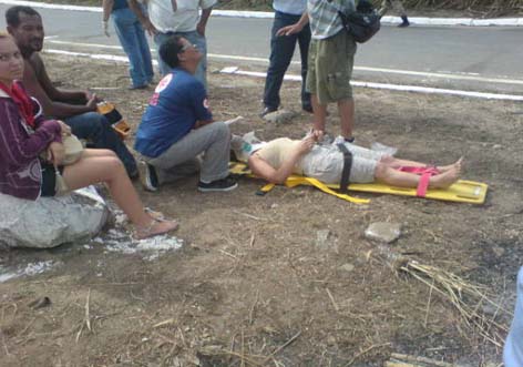 O motorista do caminhão, Benivaldo Matias, 28, ficou preso às ferragens depois que o veículo tombou ao lado da pista. Ele foi socorrido pelo helicóptero do Serviço de Atendimento Móvel de Urgência (Samu) para o Hospital Geral do Estado.
