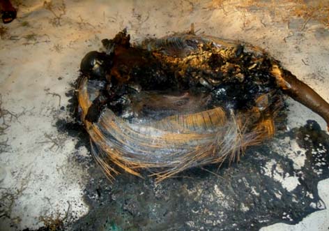 Um pneu foi utilizado para queimar o corpo, que está totalmente irreconhecível.