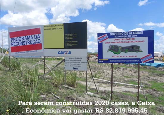 Aparentemente e pelo que se apresenta no momento o sonho dos desabrigados da cheia de junho de 2010 de ter sua casa para acordar do pesadelo ao menos em União dos Palmares está mais distante que as outras cidades também atingidas já que desde que montou acampamento para construir as moradias a empresa SAMCO bem pouco ou quase nada fez a não ser estocar material para saneamento como canos, tijolos, concluiu a terraplenagem da área onde será o futuro Loteamento Empresário Newton Pereira Gonçalves e construiu uma casa para modelo (de tijolos) e apenas outras três de blocos de cimento.