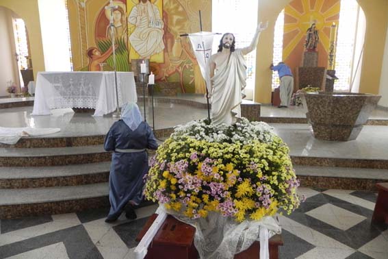 Cerca de mil e duzentos fieis católicos assistiram na manhã deste domingo (24) a ‘Missa da Ressureição’ ou de ‘Domingo de Páscoa’ na Matriz de Santa Maria Madalena em União dos Palmares, celebrada pelo padre Francisco Carlos que na condução da celebração utilizou a temática do Ressurgimento e Renovação da Vida que segundo o sacerdote foi exemplificado por Nosso Senhor Jesus Cristo com sua morte e retorno a vida exatamente na Pascoa.