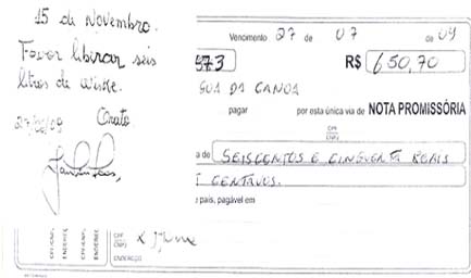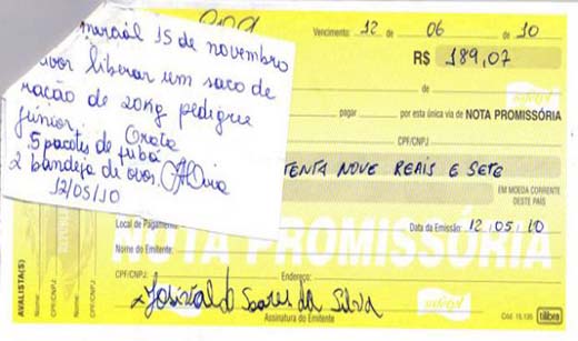 Em outro bilhete, também com promissória, o prefeito solicitava ‘despachar duas caixas de vinhos'. O prejuízo foi de R$ 394,32.