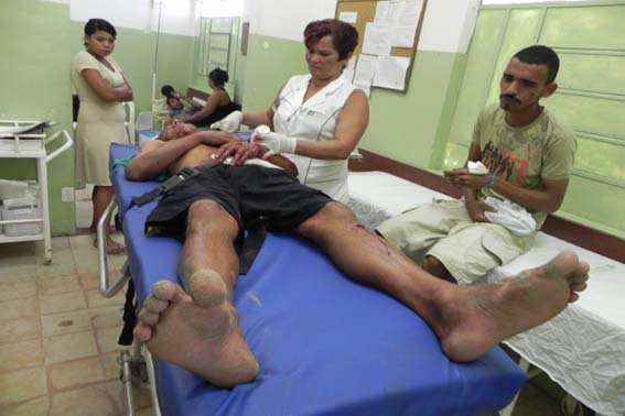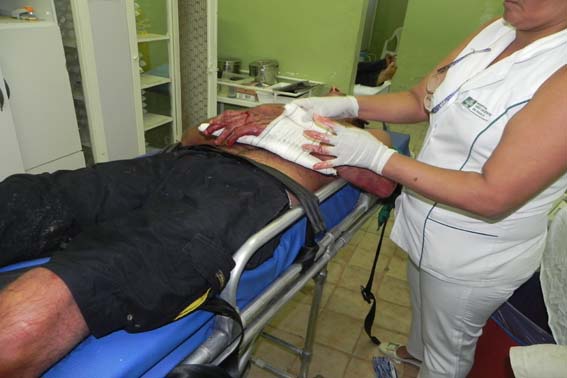 Na unidade hospitalar a médica de plantão Dra. Severina constatou junto com os paramédicos que atenderam ao paciente que ele apresentava um corte no couro cabelo, escoriações generalizadas além de haver fraturado um pulso, o que motivou sua remoção para o HGE em Maceió já que em União dos Palmares não existe atendimento ortopédico.