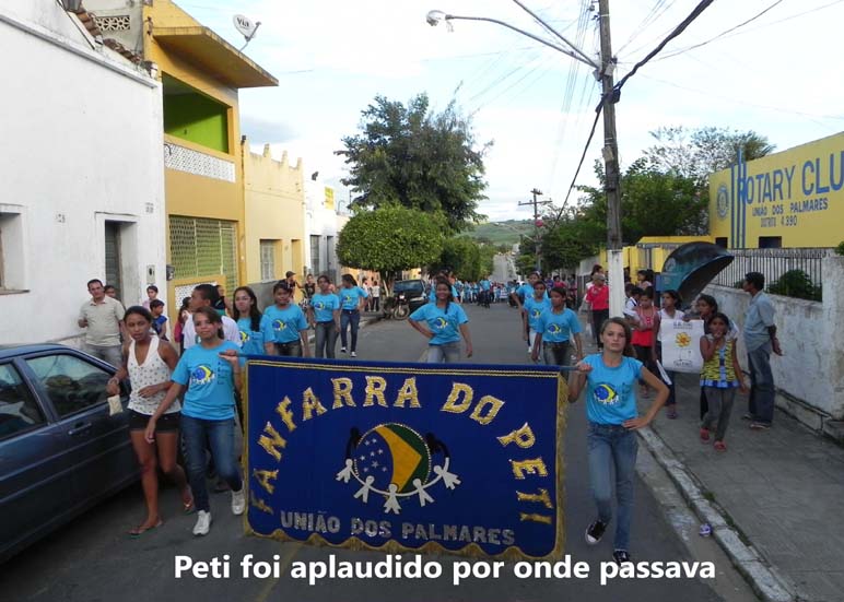 Alunos das escolas municipais, estaduais e particulares animados pela Banda de Fanfarra do Peti participaram do evento que teve inicio na Rua Cel. José Bezerra Montenegro e dispersou já no final da tarde na Praça Basiliano Sarmento quando vários oradores falaram aos jovens estudantes sobre a significação da preservação da moral e dos costumes, dentre os oradores, o Vereador Cicero Aureliano (Tutu), a Secretária de Ação Social senhora Lídia Campos, o Conselheiro Tutelar Anderson e a Coordenadora do CREAS em União dos Palmares, professora Ana Maria Cardoso Melo.