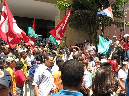 Neste momento, os servidores que permanecem na porta do prédio realizam o ‘enterro’ simbólico do governador Teotonio Vilela Filho (PSDB). Centenas de grevistas, além de integrantes da Polícia Militar permanecem no local, aguardando um desfecho para o impasse.