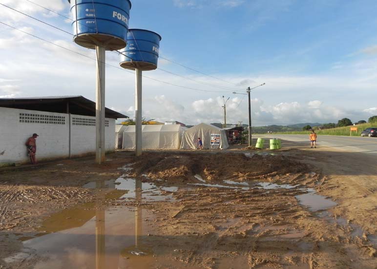 Durante os quase vinte minutos que a reportagem esteve no local nenhum funcionário da Prefeitura apareceu para explicar nada. As pessoas – maior parte já cadastradas – mas que parecem temer represálias ou perder as casas, falam pouco, mas assim mesmo com timidez. Entretanto, todos afirmam que preferiam estar nas barracas de lona preta na Rua do Juazeiro ou no Ginásio de Esportes do que ficar “em cima” (perto) da pista onde as crianças estão em constante risco de vida e atoladas dentro da lama sem ter sequer onde satisfazer suas necessidades fisiológicas.