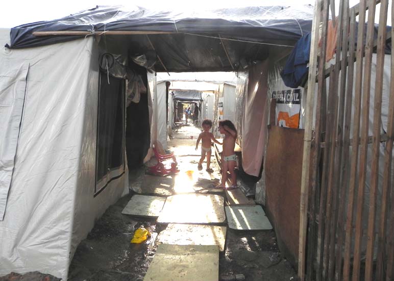 Uma criança desnuda brincando com a lama dá a dimensão exata de como as pessoas estão vivendo na nova “Cidade de Lona”.