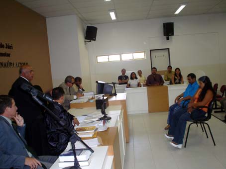 A família jurídica palmarina viveu hoje momentos impares com a realização do 1º Júri Popular realizado na sala do Júri do Palácio da Justiça de União dos Palmares, inaugurado no final de dezembro de 2006 ainda na gestão do presidente do TJ-AL, Estácio Luiz Gama de Lima, e que contou com a participação dos Juízes Olivia Medeiros (titular da Vara do Crime) e Aécio Flávio de Brito (que presidiu a sessão), do Promotor Tácito Yuri que funcionou na acusação do Advogado Lucimar Pereira Vasconcelos que defendeu os réus, escrivães, serventuários, estudantes e curiosos.