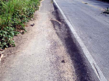 O motorista desavisado que tentar desviar seu veiculo da irregularidade pode virar, pois o degrau (área de escape) tem uma altura bastante considerável.