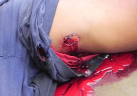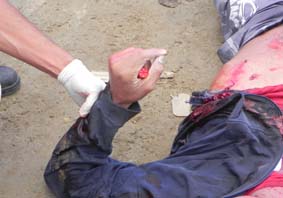 A vitima foi atingida por um tiro de espingarda 12 na altura da costela esquerda e um de outro de menor calibre menor (provavelmente revolver ou pistola 380mm) no lado direito do pescoço. Uma guarnição da RP comandado pelo sargento Junior, o cabo Everaldo e o soldado Mariano estiveram no local isolaram a área e comunicaram o fato ao Delegado Regional Antonio Nunes.