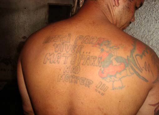 Diego confessou o crime à polícia. “Eu participei sim. Mas estava apenas como motorista. Quem matou o senhor foi o Gringo”, disse. Ele tem em suas costas uma tatuagem destacando “Nasci para viver, mato para não morrer...”.