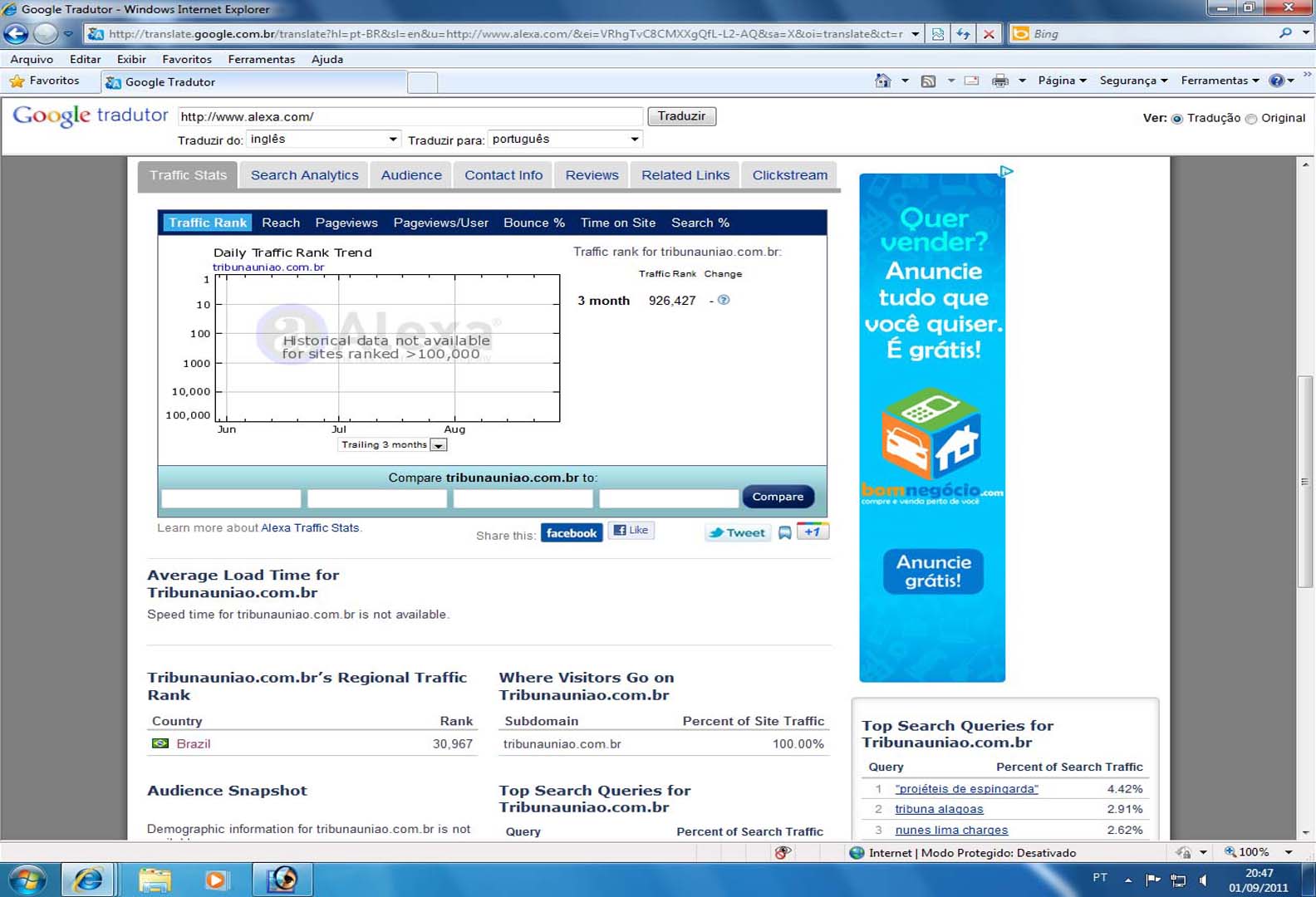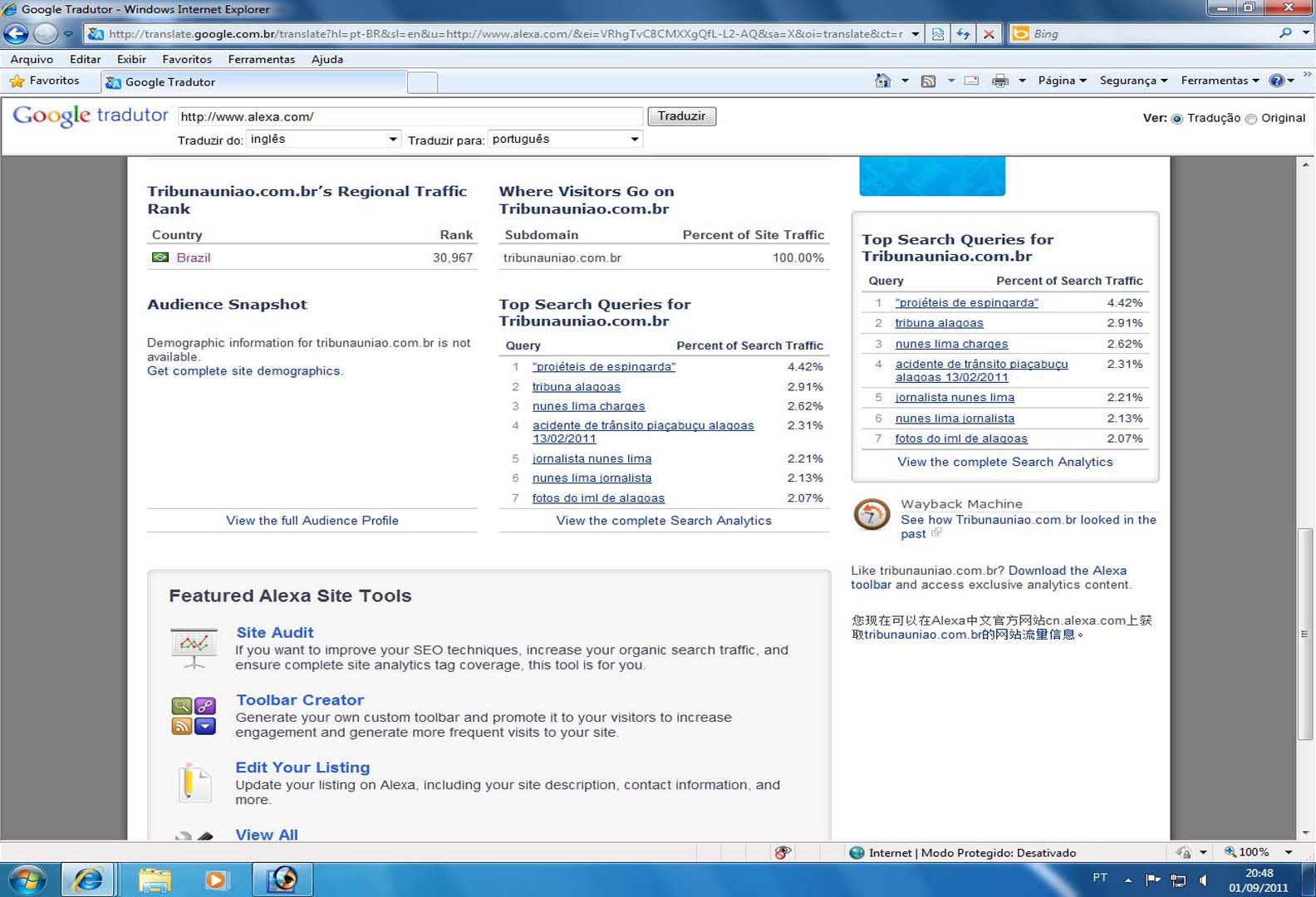 Uma informação chegada a esta editoria através de um parceiro nos indicava uma incursão no site internacional Alexa.com, o que fizemos na manhã desta sexta-feira dia 02 de setembro.