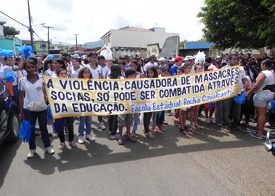 O movimento pacifico teve inicio na Escola Estadual Dr. Carlos Gomes de Barros (a maior do seu gênero no interior do estado) localiza na Avenida João Lyra Filho no acesso a cidade que foi uma das escolas organizadoras do evento, que segundo os professores utilizou como tema da manifestação um texto da Bíblia que profetiza “Felizes são os que promovem a Paz, por estes serão chamados de filhos de Deus”, cujo tema segundo afirmou uma professora, coincide com a responsabilidade das autoridades judiciárias e do aparelho policial em relação à garantia da paz entre a juventude.