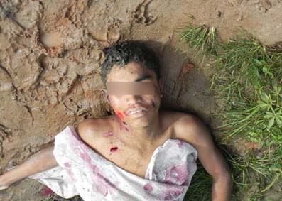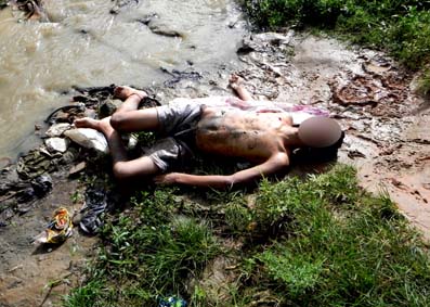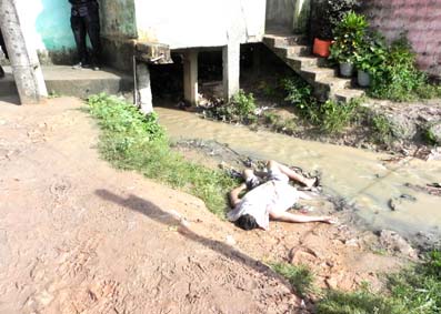 O corpo apresenta ferimentos produzidos por arma branca na região do tórax, em uma das mãos e nas costas, presumindo-se que foram aplicadas pelo menos 12 estocadas de faca peixeira ou punhal pelo matador ou matadores de ‘Totó’.