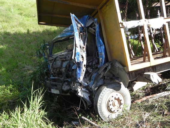 Uma colisão frontal envolvendo um caminhão e uma carreta ocorrido as 14:07 hs da tarde desta segunda feira (19) no km 33 da BR-104 na zona rural de União dos Palmares vitimou fatalmente a domestica Alane Manoela Ventura dos Santos, casada de 23 anos de idade e lesionou gravemente seu marido o motorista dos Correios Gesse da Silva de 25 anos, residentes na Avenida Marques Luz em Murici, além de ocasionar fraturas no motorista de um caminhão da Usina Serra Grande utilizado para transporte de cana conhecido como ‘gaiolão” Aleone Antonio dos Santos de 61 anos de idade, residente em Atalaia que sofreu fraturas nas duas pernas e escoriações generalizadas.