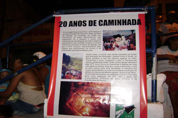 Segundo o padre Ismael da Paróquia de Santa Maria Madalena o evento vem sendo realizado em locais que precisam de motivação, visando levar a frente, de forma pacifica, a luta da reforma agrária no país. “Conquistar a Terra, Multiplicar o Pão” e “Derrubando Cercas, Produzindo Vidas” foram outros temas utilizados pela CPT como forma de disseminar a defesa por uma vida digna no campo. Este ano será celebrado: a luta do povo hebreu pela terra prometida, a memória dos negros quilombolas e as lutas dos homens e das mulheres do campo em defesa da reforma agrária. - “Romaria da Terra” – vinte anos de caminhada: da Conquista da Serra à Luta Pela Terra. Uma realização da CPT com o apoio das Comunidades Eclesias de Base (CEBs) e da Arquidiocese de Maceió.