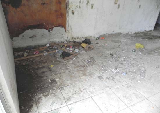 No dia de ontem (12) por ser feriado nacional e pressentindo a porta aberta e o fluxo de pessoas (aparentemente menores que deixaram rapidamente o local ao pressentir a chegada da reportagem), a nossa equipe se aproximou e fotografou o interior do edifício onde foram anotados resquícios de cigarros de maconha, roupas intimas masculinas e femininas, preservativos usados, sacos plásticos, além de alguns vidros quebrados largados no chão.