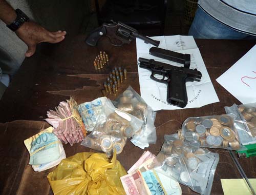 A polícia recuperou R$ 5.018,95 em espécie, 1 pistola Taurus calibre 380 com um pente de balas e outro municiado e um revolver Taurus calibre 38 com seis projeteis intactos além de jóias, relógios e diversos telefones celulares. A equipe ‘Alfa’ do PELOPES que reforçou o GPM de São José da Laje e a Guarda Municipal foi comandada pelo capitão Cláudio. Após a ação, os policiais que não conseguiram prender o chefe da quadrilha conhecido pela alcunha de ‘Magrão’ que é um elemento periculoso e é apontado de arquitetar o plano do assalto segundo os parceiros, aproveitou a confusão e fugiu foram cumprimentados pela comunidade.