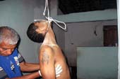Ricardo pegou um fio grosso, amarrou na parede e depois amarrou no pescoço e pulou. O corpo já apresentava rigidez, porque o fato aconteceu na tarde deste sábado, mas só à noite é que os familiares descobriram o corpo.