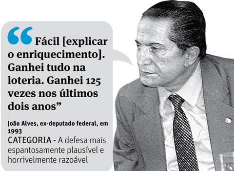 Em "a defesa mais espantosamente plausível e horrivelmente razoável", está o depoimento do então deputado João Alves (1919-2004) à CPI do Orçamento, em 1993.